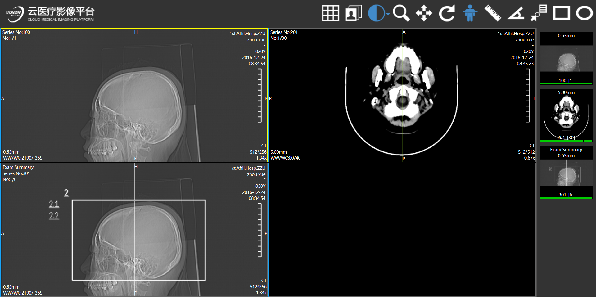 从列表界面或申请报告界面点击“查看图像”都会打开查看图像窗口,工具栏按钮自左往右为: